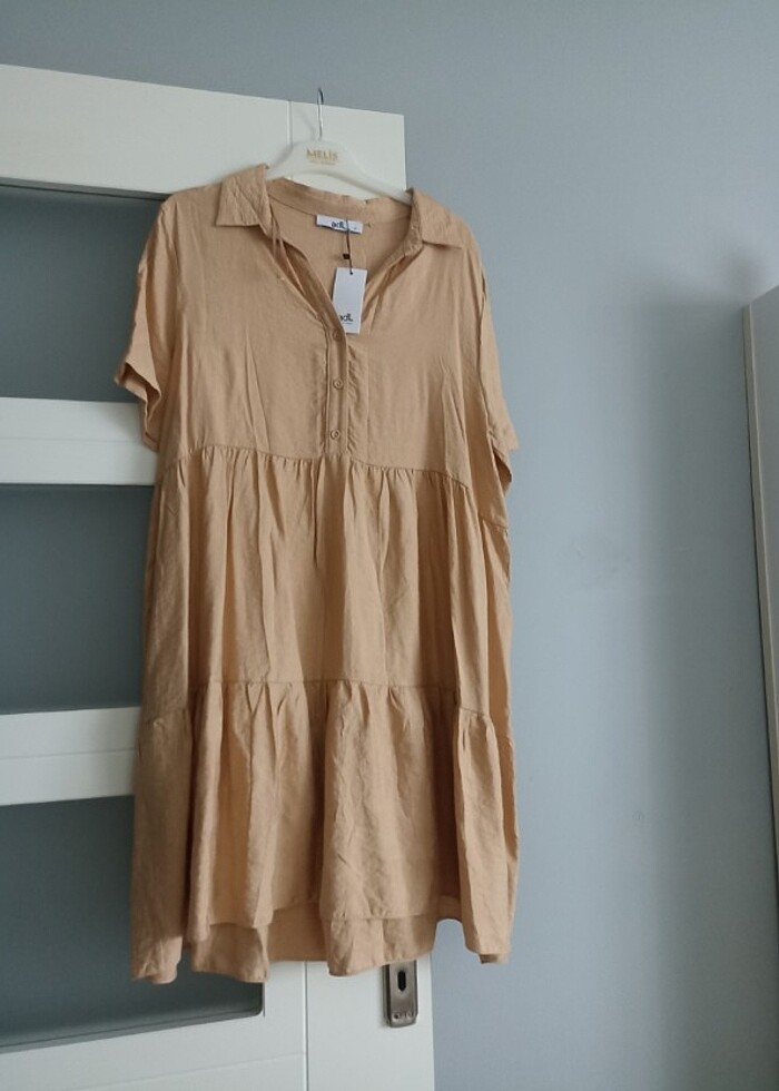 Kısa kol diz boyu elbise