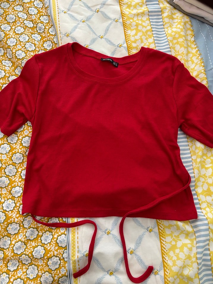 Yuvarlak yaka belden bağlamalı sırt dekolteli tshrt crop