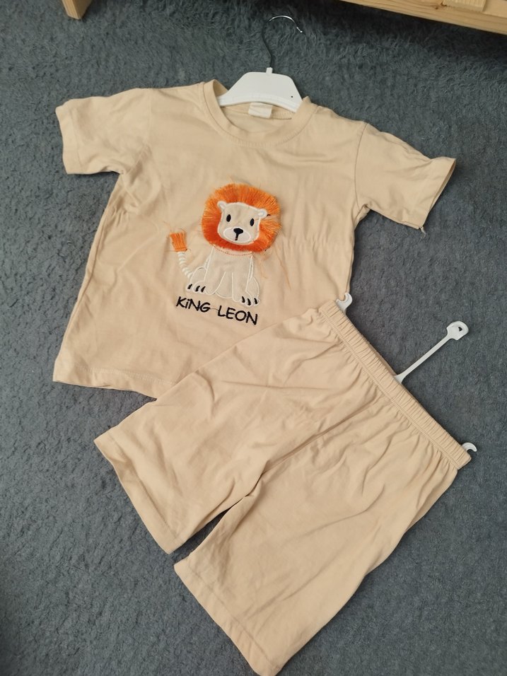 Yumuşak ve sıcak kumaştan kısa kollu, bisiklet yaka üst ve eşleşen şortlardan oluşan bebek erkek takımı. Üstünde 'KING LEON' yazılı aslan baskısı bulunur.