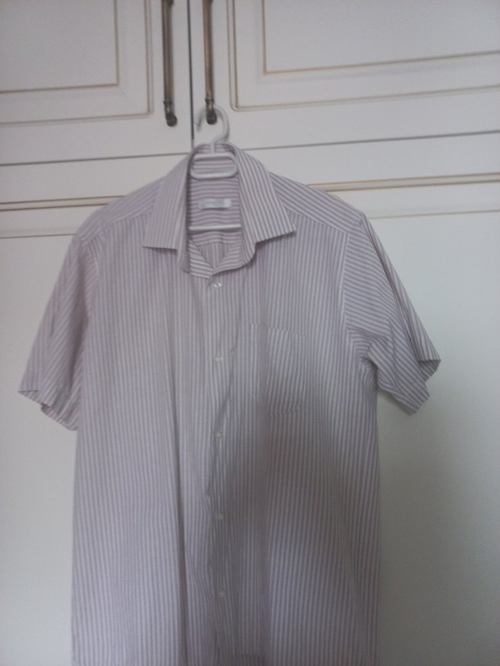 b0y 68, en 58 cmKısa kollu, bej renkli keten gömlek, yakalı ve düğmeli tasarımıyla günlük ve ofis kullanımı için uygundur.