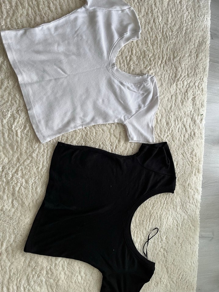 Beyaz ve siyah renklerde, yumuşak kumaştan yapılmış kısa kollu, vücuda oturan çok kurtarıcı parça