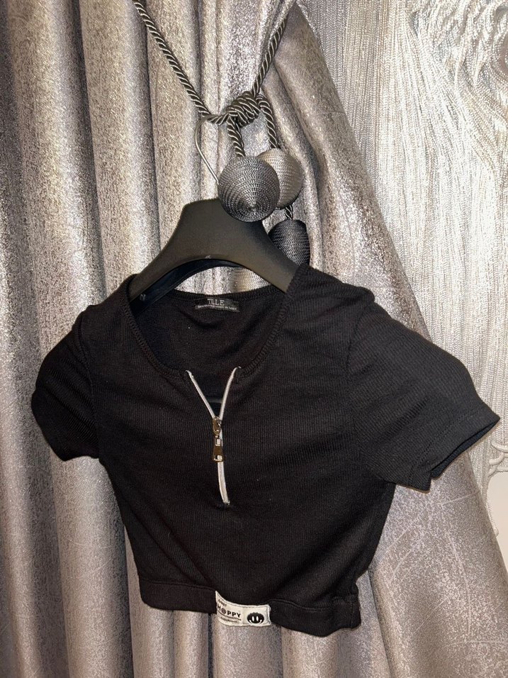 Fermuar detaylı kısa kollu crop