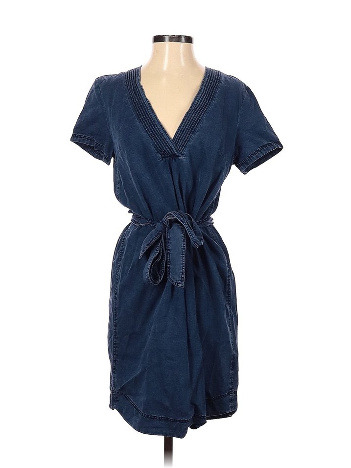 Lacivert denim midi elbise, v yaka ve kısa kollu, bol kesim. Kemerli ve nakış detaylı ister kemerle ister kemersiz giyilir. Salaş kesimdir temizdir Uzunluk 95 bel 55 cm İade yoktur