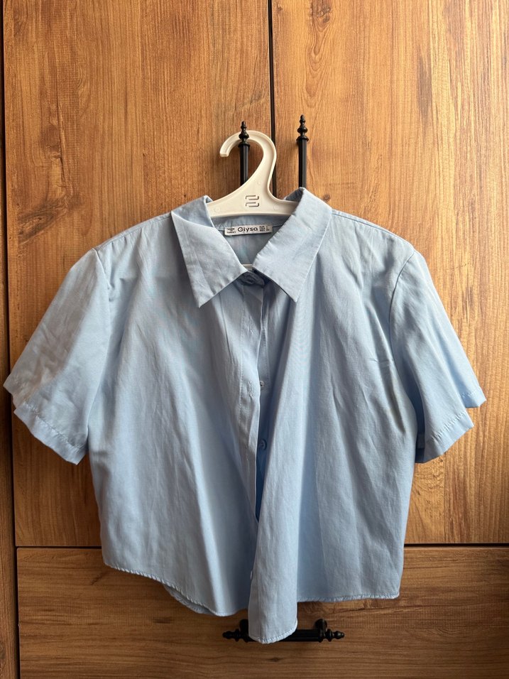 Kısa Kollu Düğmeli Keten Gömlek