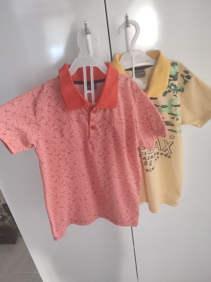 Bu erkek polo tişörtü, renkli desenli, yakalı ve kısa kolludur.