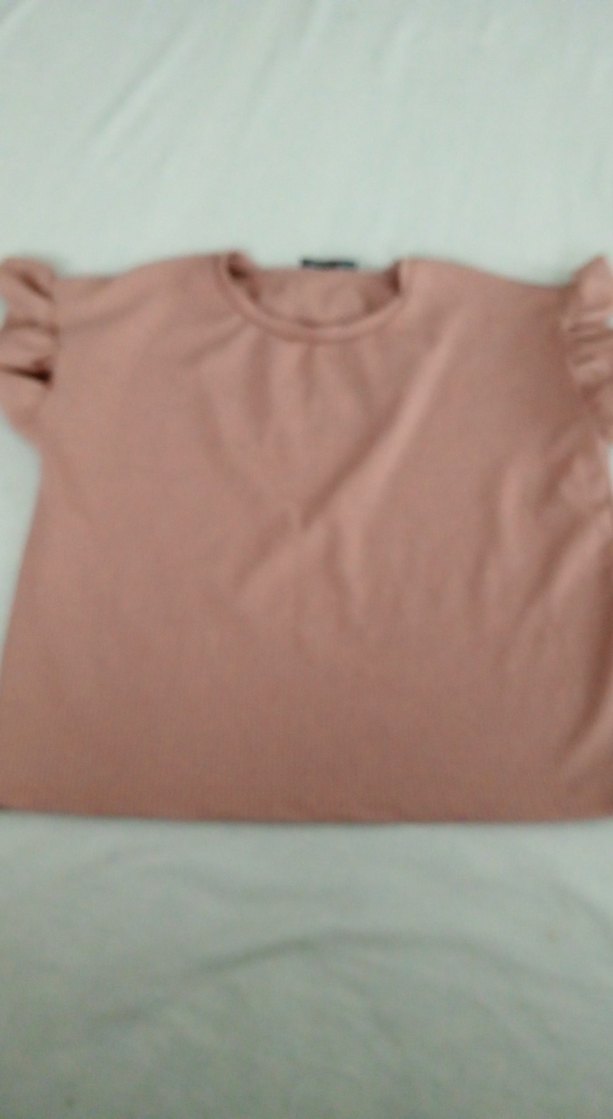 Bej renkli, kısa kollu, fırfır detaylı bayan tişörtü. Bol kesim ve yumuşak sentetik kumaştan, rahat stili için uygun.