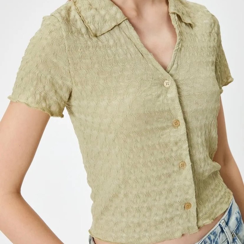 Kısa Kollu Gömlek Yaka Bluz Düğmeli Bürümcük