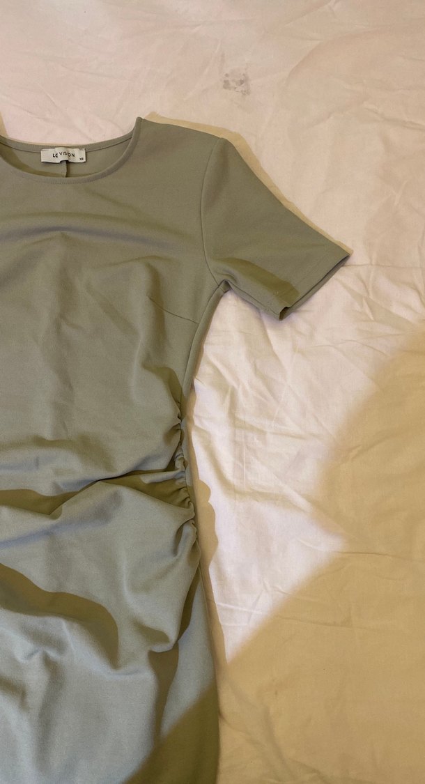 Khaki renkte, kısa kollu ve bisiklet yaka hamile gömleği. Yumuşak keten kumaştan, vücuda oturan midi boyda, desensiz ve minimal tasarımda. Arka kısmında yırtmacı vardır