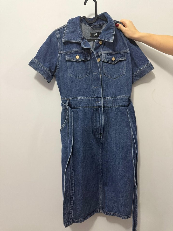 Kısa Kollu Kemerli Kot Elbise