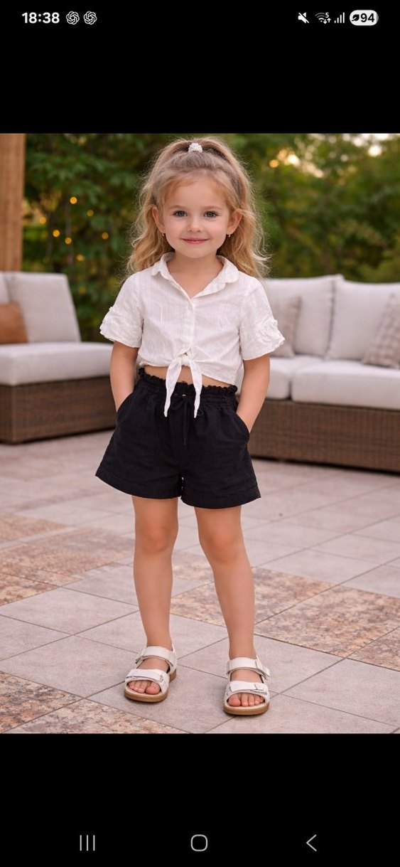 Beyaz keten gömlek, kısa kollu, yakalı ve bol kesimdir. Düğmeli önü ve kısa mini boyu ile bohem ve Paris tarzını yansıtır. Günlük kullanım için uygundur. 5-6 yaş gömlek. küçük bir leke var 5. resimde