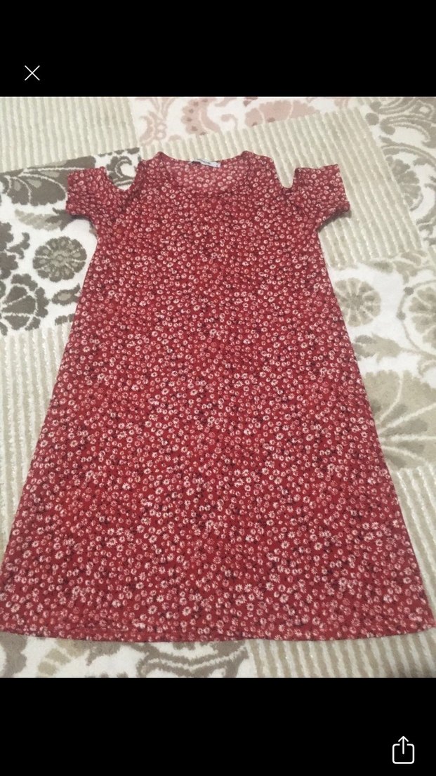 Yumuşak sentetik kumaştan yapılmış, kısa kollu ve tek renk uzun kırmızı elbise. Bohem tarzda, salaş ve drapeli kesime sahiptir.