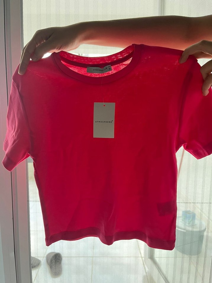 Kısa kollu, yuvarlak yakalı, parlak kırmızı renkli kadın tişörtü. Yumuşak sentetik kumaştan, normal boyda ve desensiz, rahat sokak stili için uygun. Günlük kullanım için şık ve rahat.