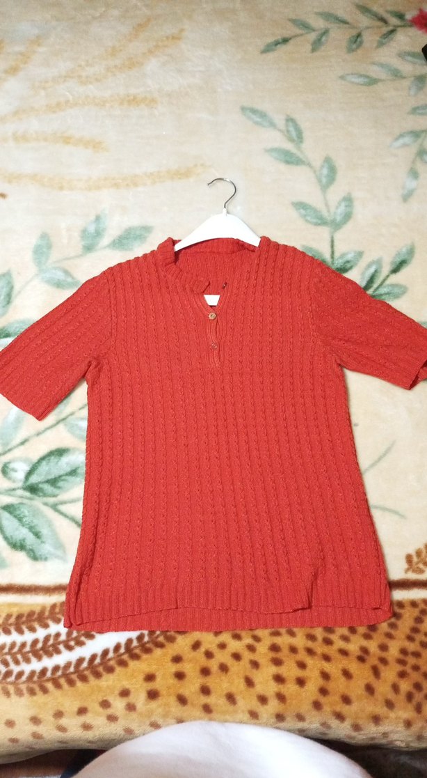 Kısa kollu, bisiklet yakalı kırmızı triko kadın kazak, rahat kesimi ve normal boyuyla renkli, bohem tarzda gündelik kullanım için uygundur.