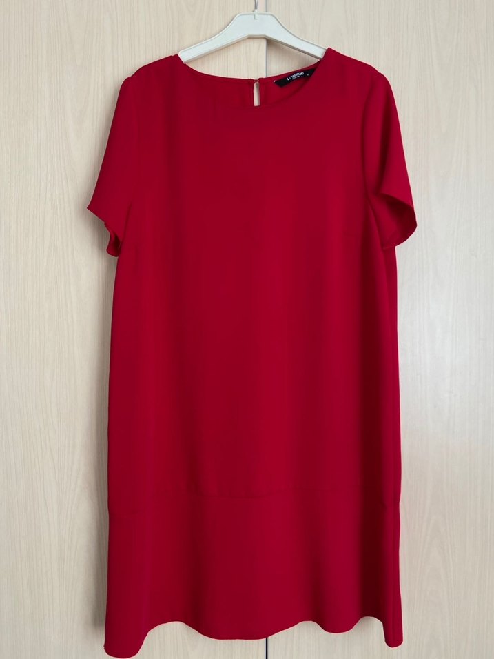 Kısa kollu, yuvarlak yakalı ve dökümlü tasarımlı kırmızı tunik. Midi boy ve rahat kesim. Günlük kullanıma uygun.