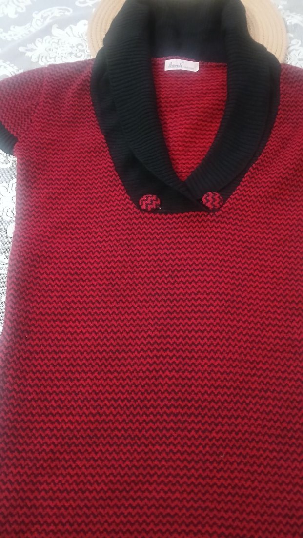 Kısa Kollu Kırmızı V Yaka Triko Kazak