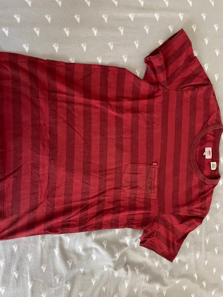 Koyu kırmızı çizgili, kısa kollu, yuvarlak yakalı ve bol kesim erkek tişörtü. Düğmeli detaylı, sentetik kumaştan üretilmiştir, günlük kullanıma uygundur. Levi’s