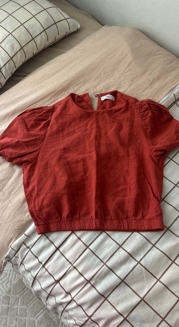 Kısa balon kollu, yuvarlak yakalı, bol kesim keten bluz, günlük rahat ve şık tarz sunar.