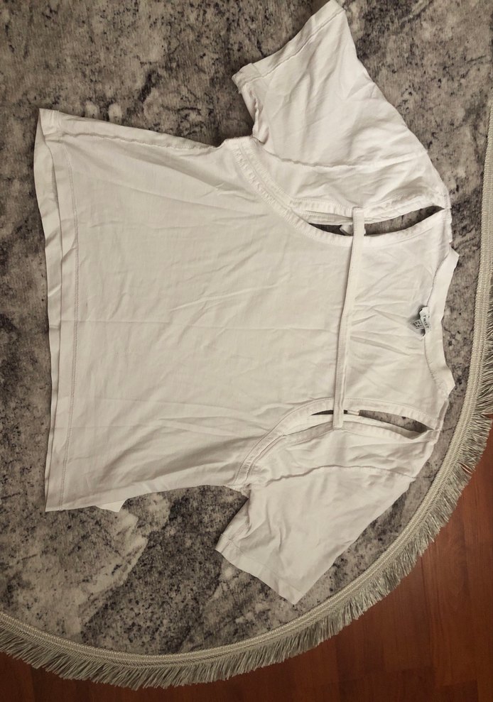 Kısa Kollu, Kuşaklı Beyaz Kadın Bluz M beden