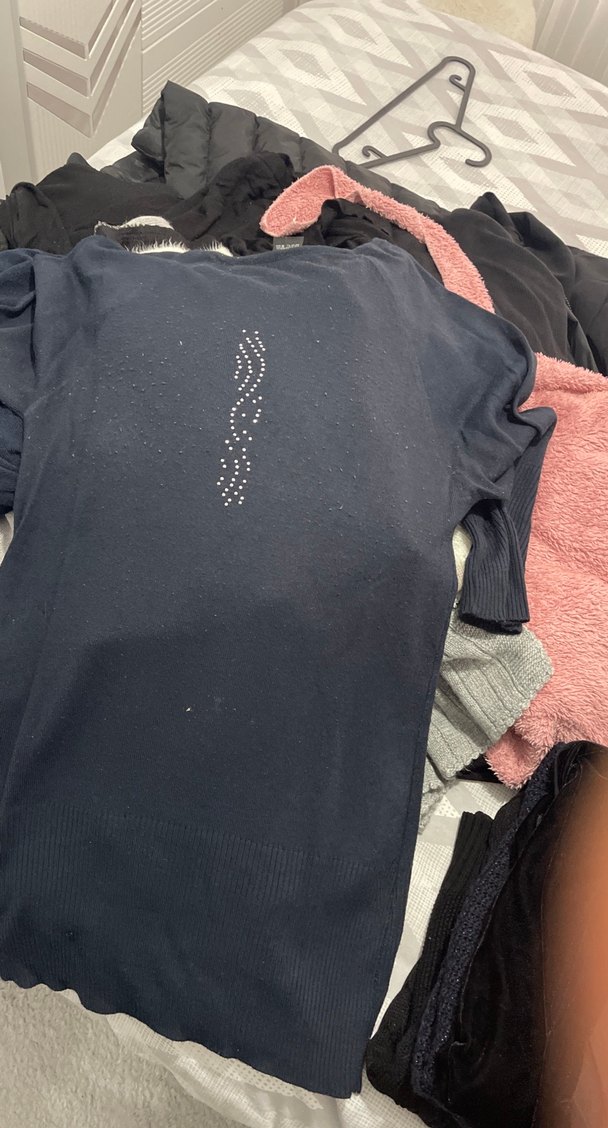Kısa kollu, dar kesim hamile tişörtü, yuvarlak yakalı ve önünde ince payet detaylıdır. Koyu gri, yumuşak sentetik kumaştan günlük kullanıma uygundur. ✨