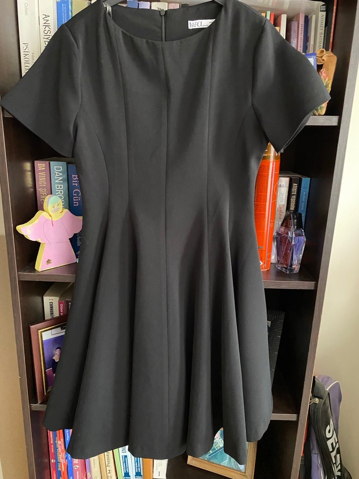 Kısa Kollu Piliseli Midi Siyah Elbise
