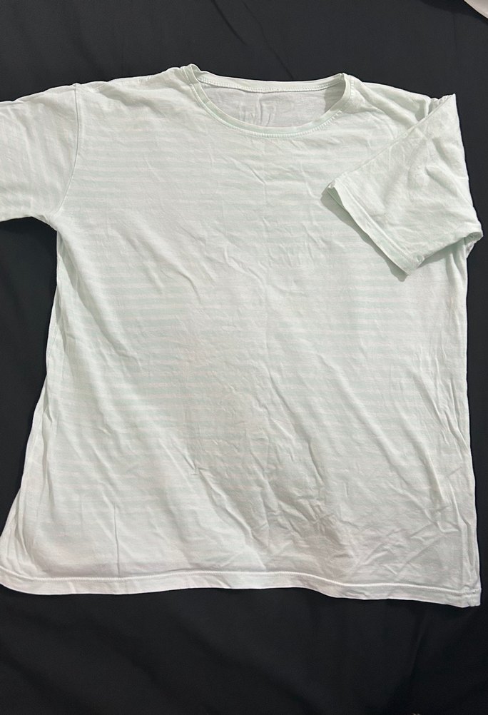 Kısa Kollu, Salaş, Beyaz Açık su yeşili çizgili Tişört