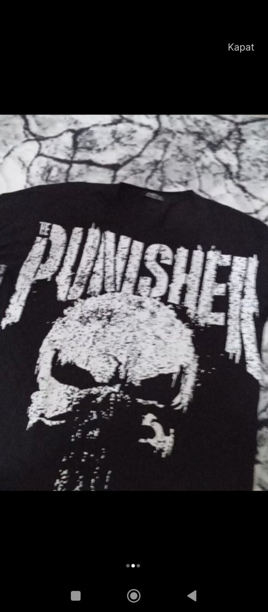 Siyah, kısa kollu, baskılı kafatası ve 'The Punisher' yazılı, dar kesim, bisiklet yaka rock punk tişört.