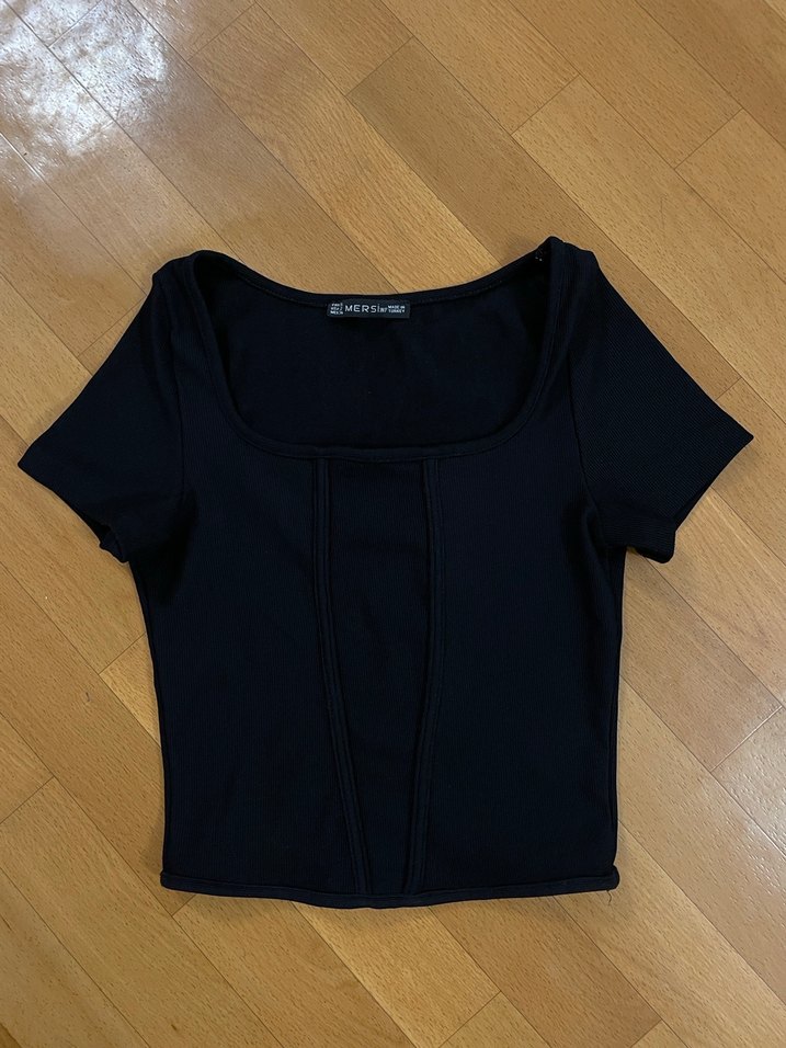 Kısa kollu, tek renk siyah crop top, tekne yaka ve vücuda oturan kesime sahiptir. Pürüzsüz sentetik kumaştan yapılmış, minimalist ve goth tarzı günlük kullanım için uygundur.