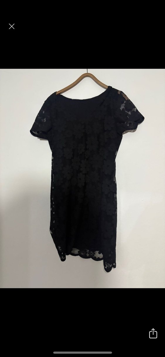 Kısa Kollu Siyah Dantel Midi Elbise