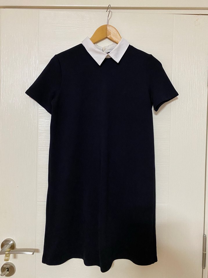 Kısa kollu, beyaz gömlek yakalı siyah elbise, düz ve rahat kesimdir. Ofis için uygun,şık bir elbisedir. Orijinal zara trafaluc serisidir.