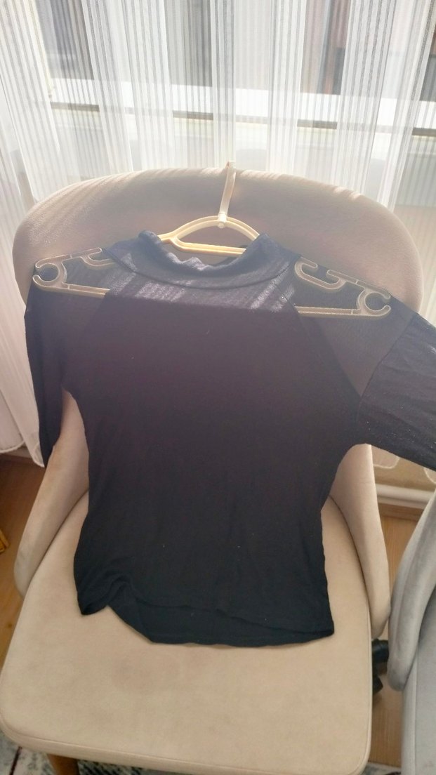 Yüksek yakalı, kısa kollu ve tokalı detaylı siyah fitted bluz. Pürüzsüz sentetik kumaştan, gotik tarzda günlük kullanıma uygun.