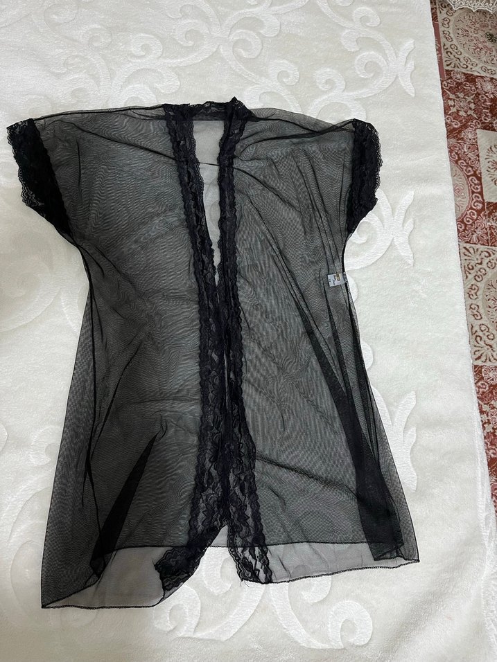 Kısa Kollu Siyah Gotik Midi Kadın Sabahlık