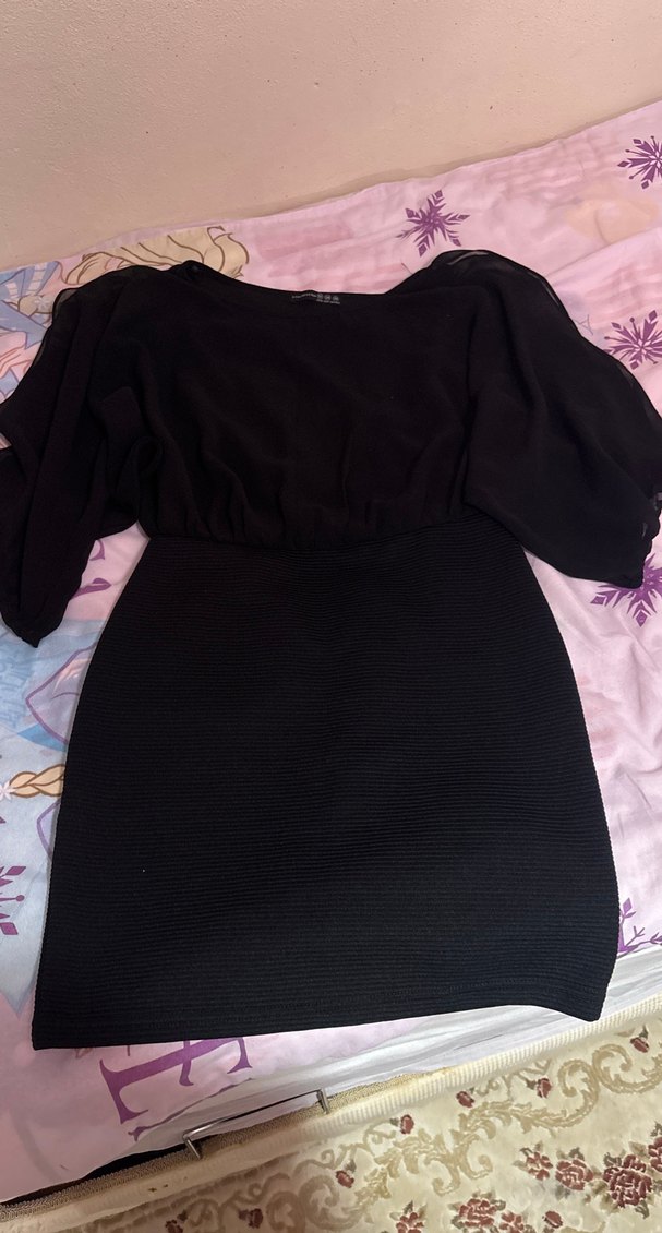 Kısa Kollu Siyah Midi Elbise