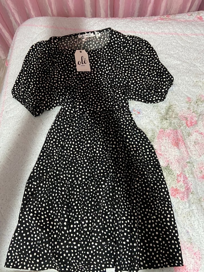 Kısa Kollu Siyah Puantiyeli elbise