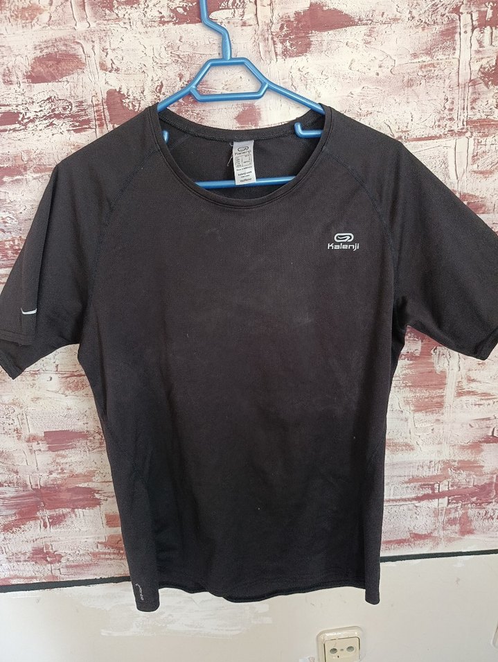 Kısa kollu, yuvarlak yakalı ve cırt cırtlı detaylı, koyu renk sentetik kumaştan yapılmış spor tişörtü. Streetwear ve athleisure tarzına uygundur.