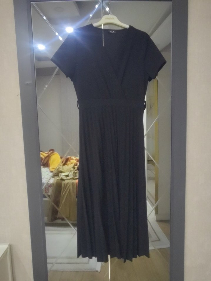 Kısa Kollu Siyah Uzun V Yaka Elbise