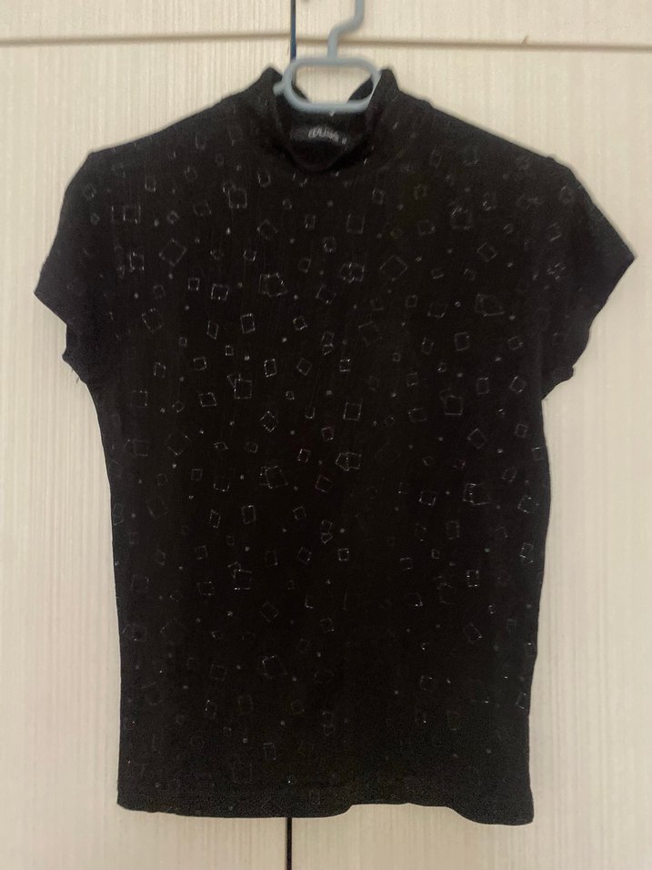 Kısa Kollu Siyah Yüksek Yakalı Kadın bluz