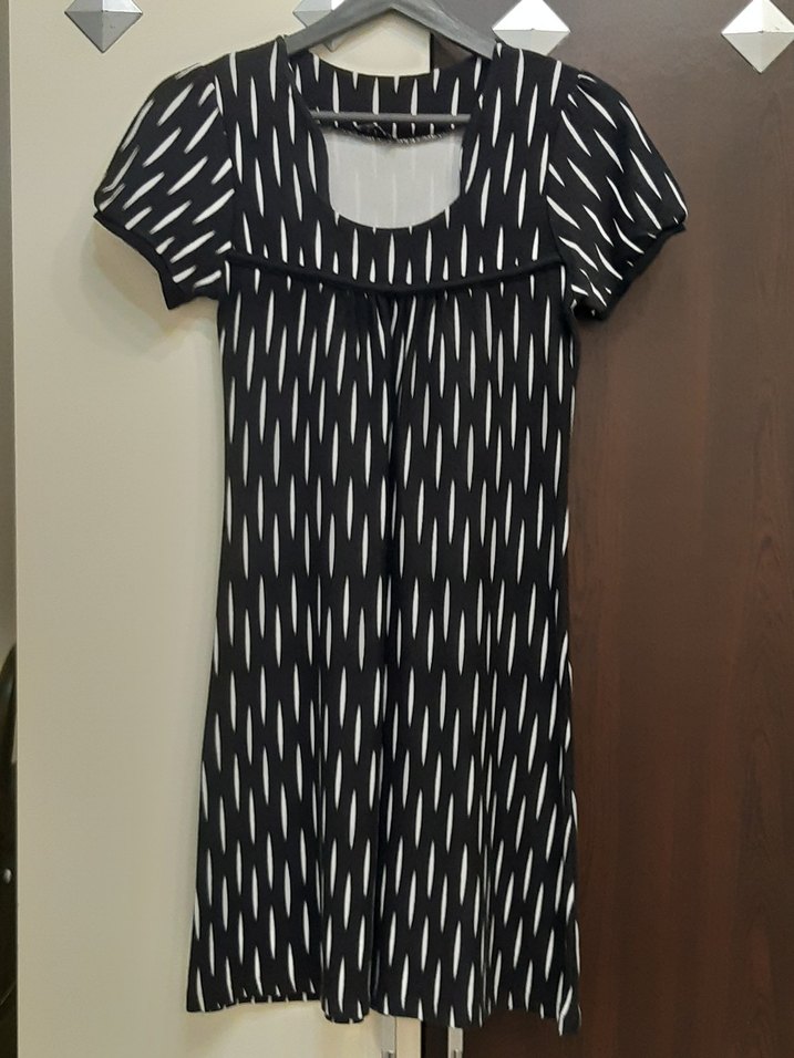 Kısa kollu, tek vücut kesim midi uzunluğunda elbise. Siyah beyaz zebra desenli, pileli detaylı ve sentetik kumaştan üretilmiştir. zebra desenli elbise