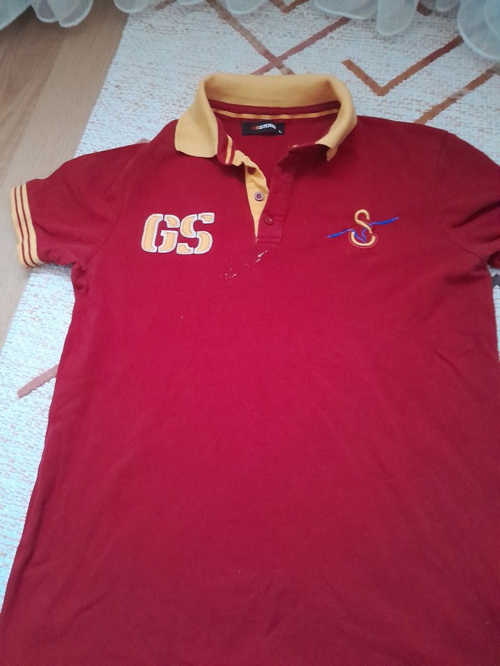 Kısa kollu, düğmeli yakalı kırmızı polo tişört. Parlak sentetik kumaştan, baskılı 'GS' ve renkli amblem detaylarıyla sportif şıklık sunar. ♂️
