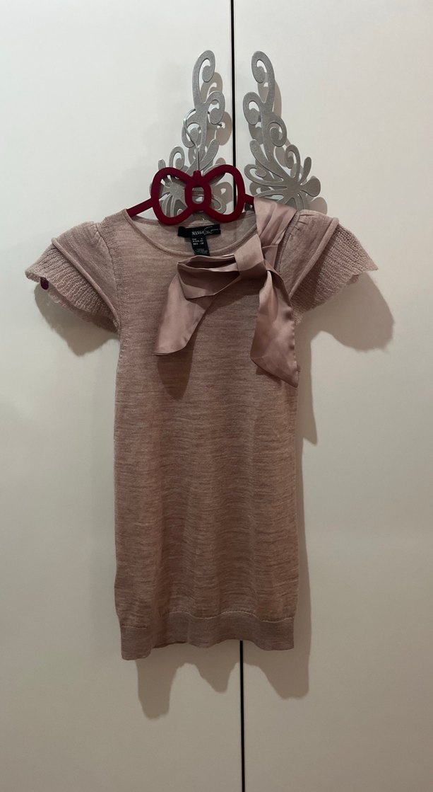 Kısa kollu, kruvaze yaka ve fitted kesime sahip bej triko bluz, süslü fiyonk detayı ile trendy sokak stiline uygun.