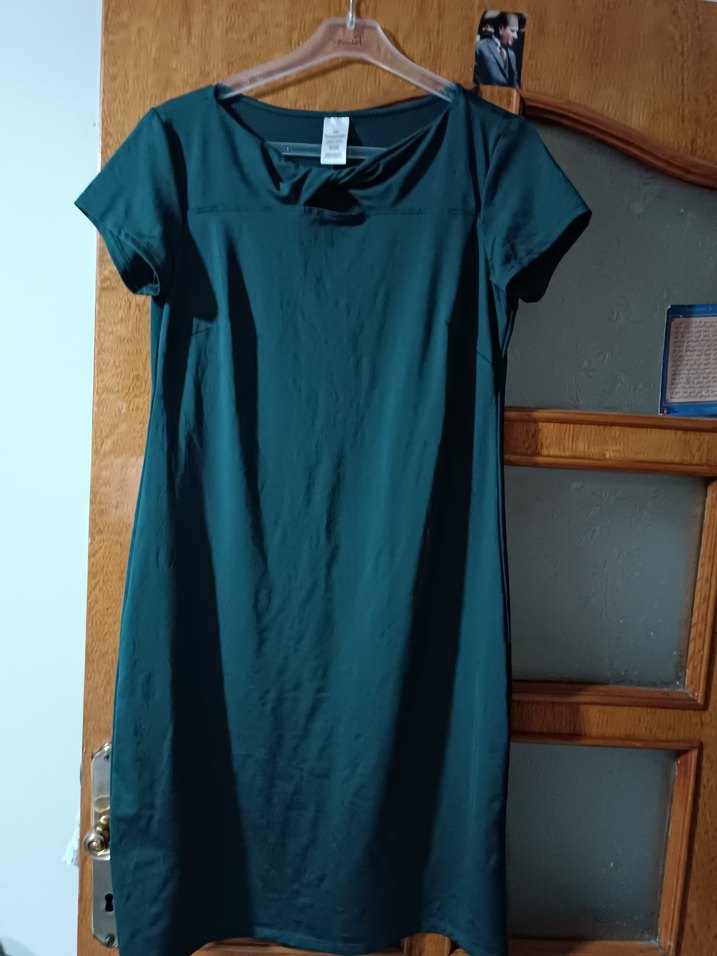 Kısa kollu, bisiklet yaka ve drapeli detaylı, vücuda oturan midi elbise. Koyu turkuaz renkte, sentetik kumaştan üretilmiştir.