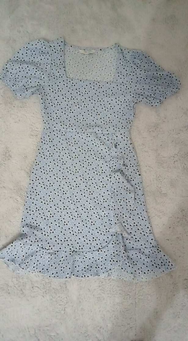 Kısa kollu, V yaka ve volan detaylı, vücuda oturan midi elbise. Pastel beyaz rahat tie-dye deseniyle günlük kullanıma uygundur.