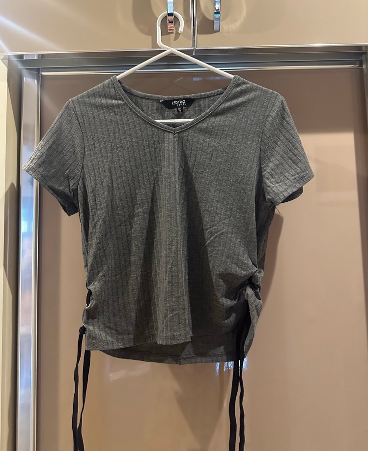 Kısa Kollu V-Yaka Gri Kadın Bluz