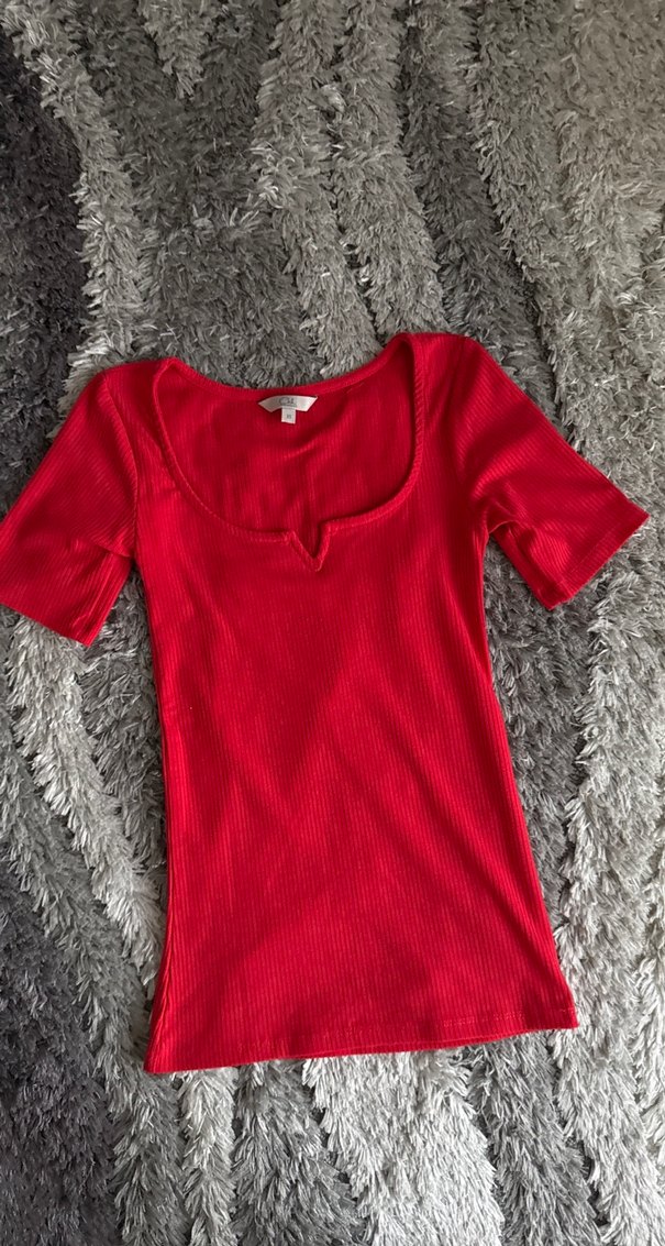 Kısa kollu, V yaka kırmızı kadın tişörtü, yumuşak sentetik kumaştan üretilmiştir. Rahat ve trend sokak stili sunar, romantik buluşmalar için uygundur.