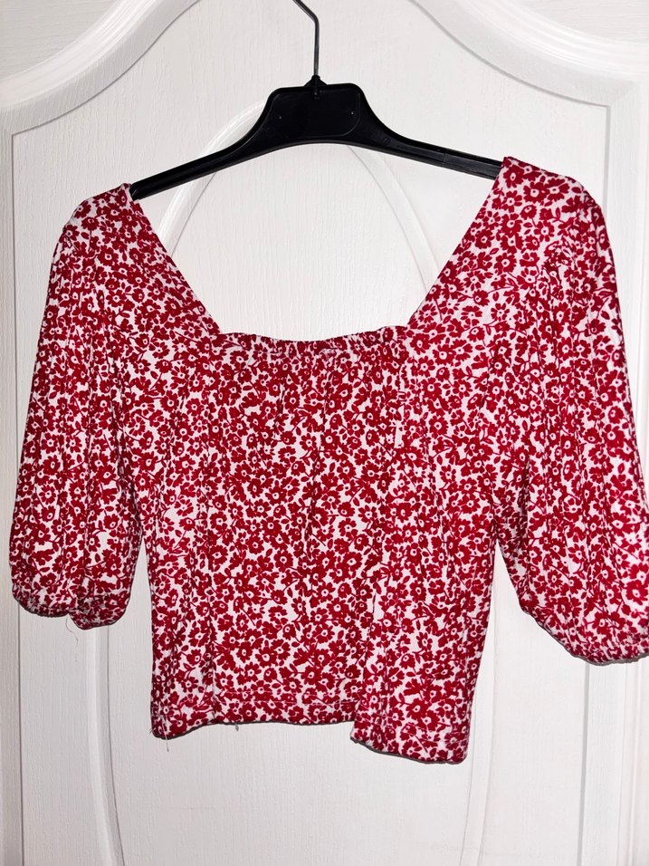 Kısa Kollu V Yaka Kırmızı Mini Bluz