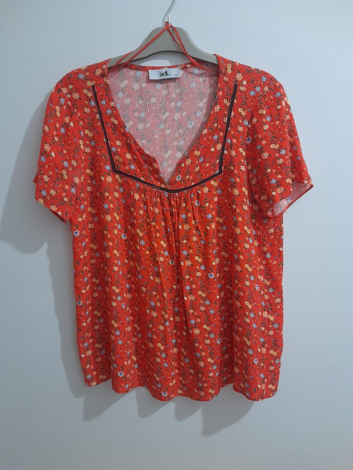 Kadınlar için kısa kollu, V yaka ve düğmeli renkli çiçek desenli bohem tarzda bol kesim bluz. Günlük kullanıma uygun, sentetik kumaştan.1 kez dahi giyilmedi dolap bekledi L beden kadar olur pamuklu emzirme kumaş harika
