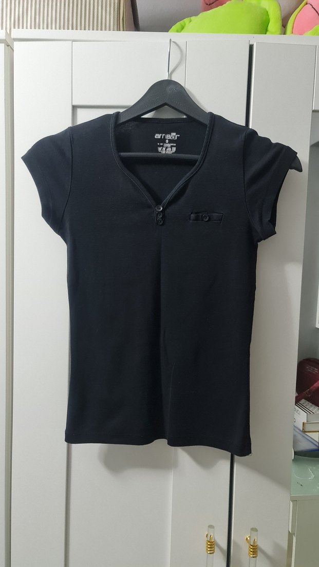 Kısa kollu,V yaka ve dar kesim bu siyah kadın tişörtü, günlük kullanıma uygundur. Ambar marka