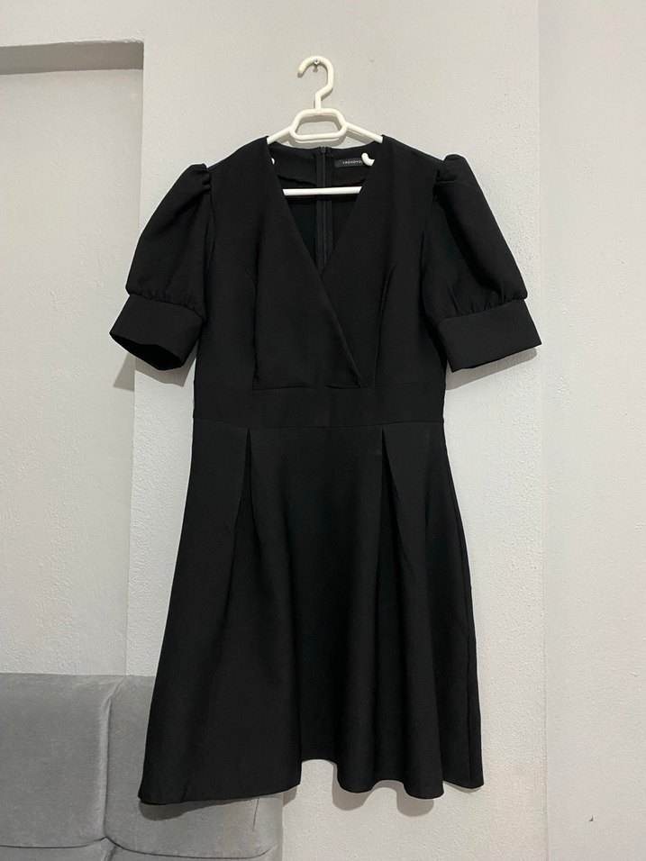 Kısa Kollu V Yaka Siyah Midi Elbise