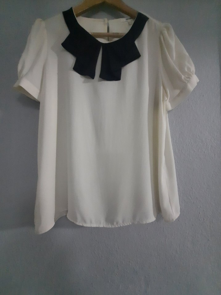 Kısa kollu, yakalı ve fırfırlı detaylı beyaz bluz. Rahat kesimli, sentetik dokulu kumaştan üretilmiştir. Ofis ve günlük sokak stiline uygundur. koton marka 42 beden az kullanılmıştır.