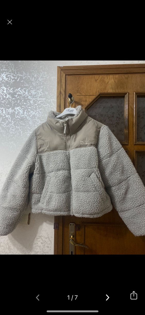 Gri renkte, yüksek yakalı ve uzun kollu, kürk detaylı kısa kesim kadın kışlık cekettir. Yumuşak ve sıcak kumaştan, trend günlük kullanıma uygundur.