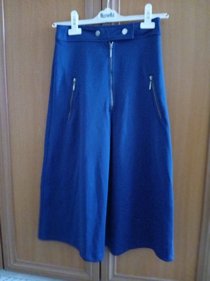 Kısa boy, lacivert kumaştan bol kesim kadın pantolon. Fermuarlı cepleriyle sokak modasına uygun, minimal ve şık tarz sunar. Yumuşak ve sıcak kumaştan, günlük kullanıma uygun. 75 cm uzunluğu